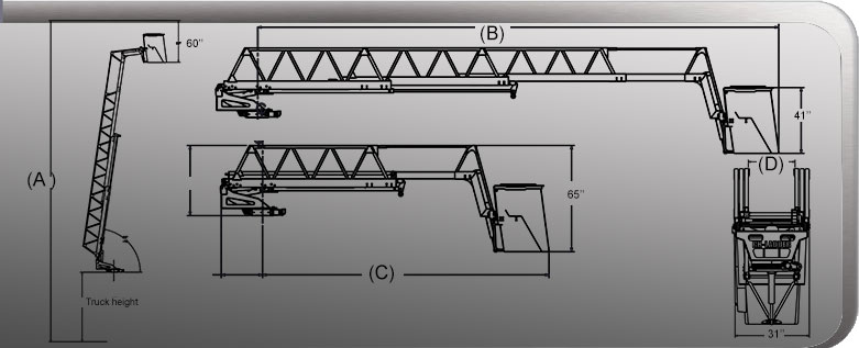 Cet équipement à nacelle doit généralement être installé sur un véhicule dont le PNBV (Poids Nominal Brut Véhicule) est supérieur à 9500 lb (4309 kg) et qui ne nécessite pas de pattes stabilisatrices. Par contre, cette dernière condition n’est pas universelle et doit dans la majorité des cas être déterminée lors des tests de stabilité de votre camion nacelle.