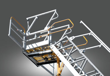 Développées pour la maintenance d'avion incendie, Les plateformes avec garde extensible RH peuvent être installées sur les équipements standards.