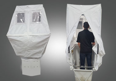 Un support de tente Isolé. Résistante, la tente s'adapte aux paniers ergonomiques en fibre RH. Plusieurs modèles sont disponibles.